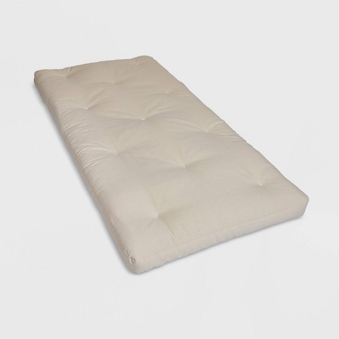 Firm construction on the infant side and a layer of natural cotton cushioning on the toddler side.